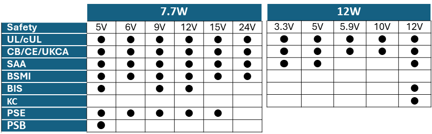 Available agency safety & output voltage