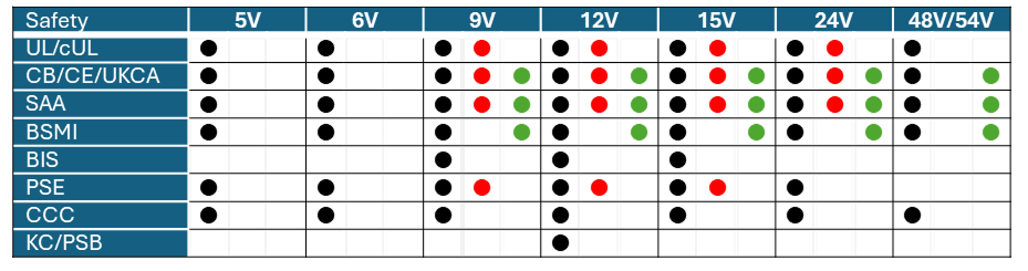 Available agency safety & output voltage